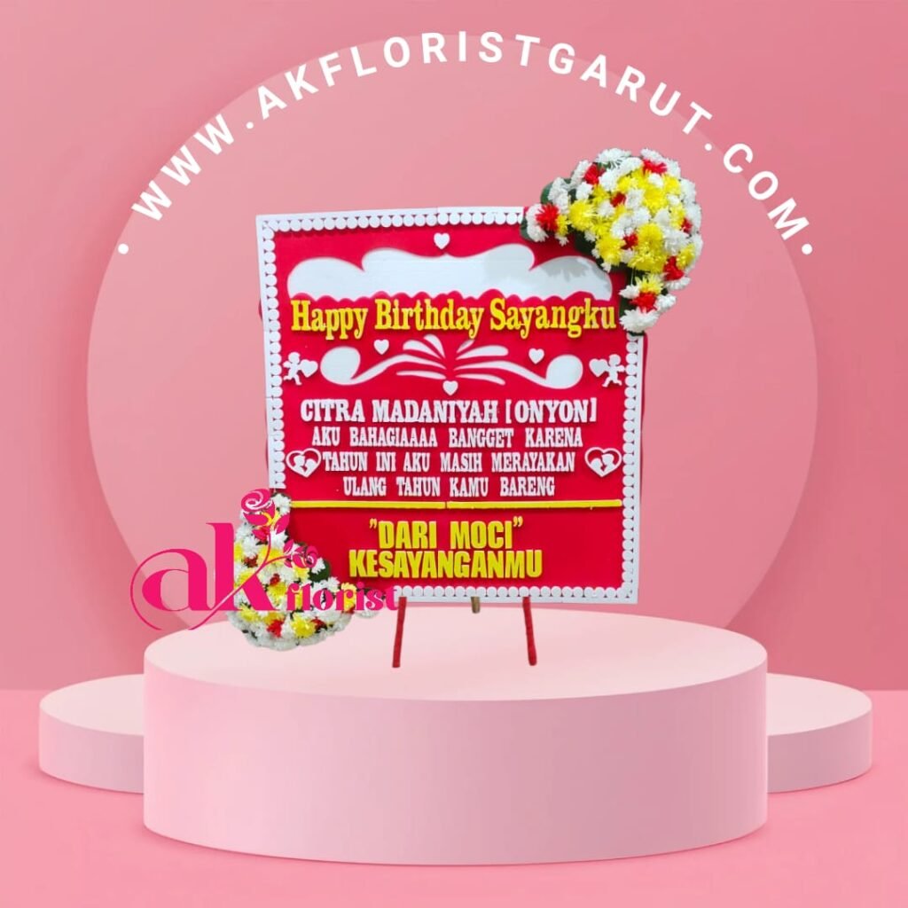 Karangan bunga mini Garut cocok digunakan untuk ucapan selamat, duka cita, ulang tahun, pembukaan usaha, hingga hadiah spesial. Dirangkai dari bunga segar dengan desain rapi dan tulisan yang bisa disesuaikan.